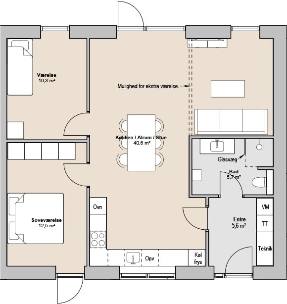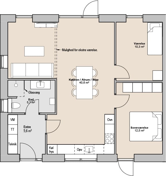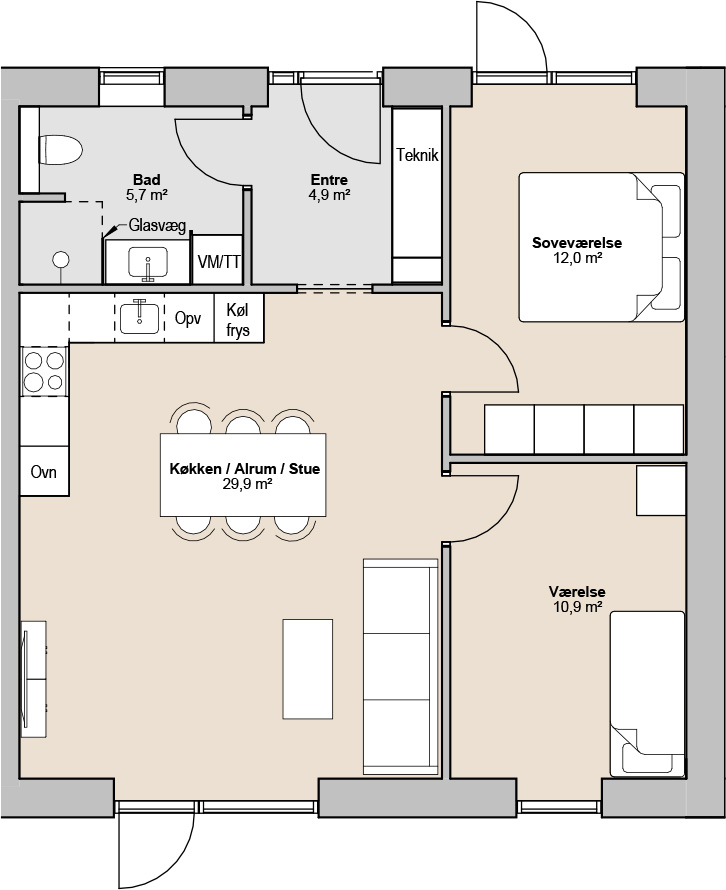 Boligerne varierer fra 78 til 113 kvadratmeter og rummer tre til fem værelser, så der er plads til både små og store behov. Hver bolig er gennemtænkt i sit design med lyse, indbydende rum, store vinduespartier og materialer, der giver et tidløst udtryk og lang holdbarhed. Moderne løsninger sikrer lavt energiforbrug og minimal vedligeholdelse.